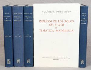 (ESPAGNE- MADRID). PEREZ PASTOR (C.). Bibliografia Madrilena, 1566-1625. Descripcion de las obras impresas en Madrid, con introduccions, documentos e indices. Madrid, 1891-1907. (Réimpression, 1970-1971).