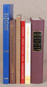 • HAEBLER (Konrad). The Early printers of Spain and Portugal. Londres, Bibliographical Society, 1897 (Réimpression, 2002). In-8, (3) ff + 152 pp. + 33 planches + pages 153 à 165 + (1) f, bradel toile prune. Ce livre avec ses 600 descriptions constitue une bibliographie des incunables (et des ouvrages imprimés jusqu'en 1502) de la péninsile ibérique.