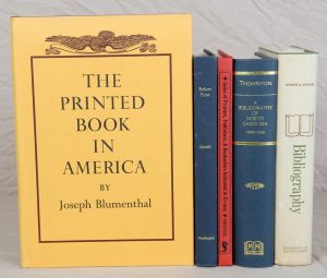 • BLUMENTHAL (Joseph). The Printed book in America. Boston, Godine, 1977. In-8, XVI + 250 pp. broché. Nombreuses illustrations en fin de volume. Index.