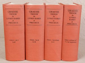 GRAESSE (J. G. Th.). Trésor de livres rares et précieux ou nouveau dictionnaire bibliographique contenant plus de cent mille articles de livres rares, curieux et recherchés... Dresde, 1859-1869. (Réimpression, 2001).