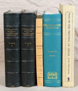 • PROCTOR (Robert). The Printing of greek in the fifteenth century. Oxford 1900. (Réimpression 2007). In-8, 5 ff.- 217 pp., rel.