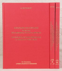 3 volumes in-4 XXV + 219 pp. + (3) ff ; (3) ff + 214 pp. + (3) ff et (3) ff + 171 pp. + (3) ff. toile rouge de l’éditeur.