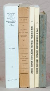 614 numéros décrits avec collations minutieuses. Tables des titres, noms de villes, de lieux et de personnes, imprimeurs et libraires.