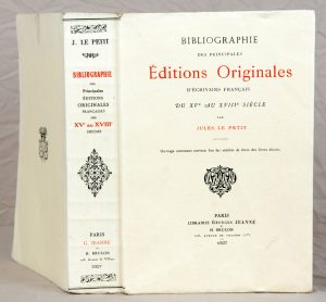 LE PETIT (Jules). Bibliographie des principales éditions originales d’écrivains français du XVe au XVIIIe siècle. Ouvrage contenant environ 300 fac-similés de titres des livres décrits. Paris, Jeanne & Brulon, 1927.