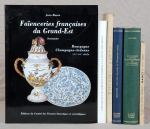 • ROSEN (Jean). Faïenceries françaises du Grand-Est. Inventaire Bourgogne, Champagne-Ardenne (XIVe-XIXe siècle). Paris, 2001. In-4, 591 pp. broché, couverture illustrée.