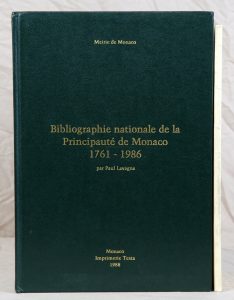 (MONACO). LAVAGNA (Paul). Bibliographie nationale de la Principauté de Monaco : 1761-1986. Monaco, 1988.