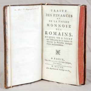 (NUMISMATIQUE). CHASSIPOL . Traité des finances et de la fausse monnaie auquel on a joint une dissertation sur la manière de discerner les médailles antiques d’avec les contrefaites (par Guill. Beauvais). Paris, Briasson, 1740.