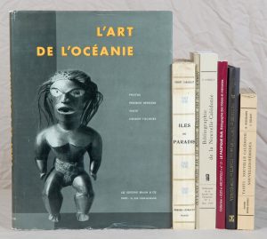 • L'art de l' Océanie. Texte de Berbert Tischner. Photographies de Friedrich Hewicker. Paris, Braun, 1954. In-4, XVI + 16 pp. + 96 planches représentant, le plus souvent, des statuettes ou des masques à pleine page, toile de l'éditeur sous jaquette illustrée. Une carte dépliante du Pacifique Sud, un petit feuillet volant : Table des illustrations. État de neuf.