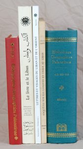 • LE "LIVRE ET LE LIBAN" (jusqu’à 1900). Catalogue d’exposition organisée à Paris au Palais de l’UNESCO en 1982. Publié sous la direction de Camille Aboussouan. Grand in-4, plus de 400 pp. broché, couverture illustrée. Érudites descriptions. Savantes collaborations. Une cinquantaine de pages sont imprimées en arabe. Illustrations.