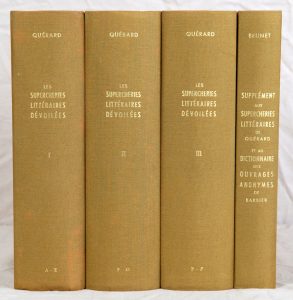 QUÉRARD (J-M.). Les Supercheries littéraires dévoilées. Galerie des écrivains français de toute l’Europe qui se sont déguisés sous des anagrammes, des astéronymes, des cryptonymes, des initialismes, des noms littéraires, des pseudonymes...
