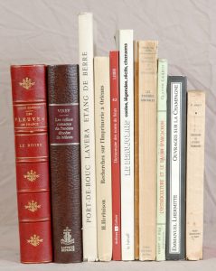 • HERLUISON (H.). Recherches sur les imprimeurs et libraires d'Orléans. Recueil de documents pour servir à l'histoire de la typographie et de la librairie orléanaise depuis le XIVe siècle jusqu'à nos jours. Orléans, Herluison, 1868 (Réimpression, 1987). In-8, II + 156 + (2) pp. broché. La première édition n'a été tirée qu'à 78 exemplaires. Celle-ci a été limitée à 200.