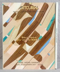 • BIBLIOTHÈQUE JAN VAN DER MARCK. Paris, 2007. In-4, environ 130 pp. (120 numéros), broché, couverture illustrée. Catalogue de vente publique, qui proposait de superbes reliures modernes, imprimé sur papier couché, abondamment illustré en couleurs.