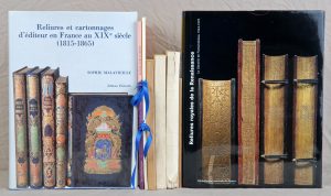 • MALAVIEILLE (Sophie). Reliures et cartonnages d’éditeur en France au XIXe siècle (1815-1865). Paris, 1989. In-4, 272 pp. reliure de l’éditeur sous jaquette illustrée. 200 illustrations en noir dans le texte et 16 planches hors texte en couleurs.