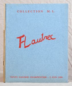 • TABLEAUX AQUARELLES ET DESSINS PAR H. de TOULOUSE-LAUTREC. Paris, Drouot, 1913. In-4, 30 pp. (21 numéros), broché, couverture imprimée. Introduction de Tristan Bernard & préface de Gustave Coquiot, 6 reproductions à pleine page.
