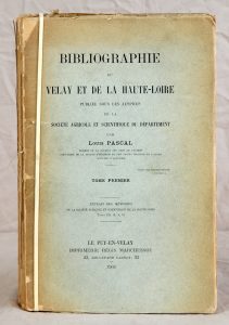 (TYPOGRAPHIE). (VELAY). PASCAL (Louis). Bibliographie du Velay et de la Haute-Loire. Tome I seul paru. Le Puy, 1903.