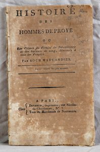 MARCANDIER Roch - Histoire des Hommes de Proye ou Les Crimes du Comité de Surveillance et des buveurs de sang, dénoncés à tous les Peuples. P., Desboeuf s.d. (de l'Imprimerie des Droits de l'Homme, place du Palais de Justice, n° 2) vers 1793.