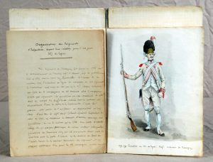Manuscrit in-8° br. de 16 pp. qui renseigne sur l'histoire du Régiment "Le régiment de Bassigny fut formé en 1775 sur le dédoublement de l'ancien régiment d'Aunis, régiment des Gentilshommes de Montboisier crée en 1621…"