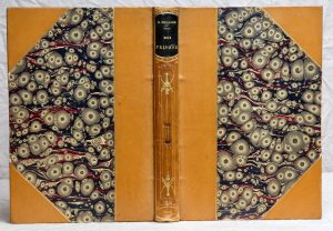 grand in-8° en reliure d'époque demi-veau cognac à coins, dos lisse orné de filets or en long avec pièce de titre noire, tête dorée, couverture blanche ipression or conservée.