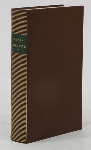 ALAIN. Propos. I. Paris, Gallimard, NRF, bibliothèque de la Pléiade ; in-8, reliure de l’éditeur, chagrin marron. 10/20 €