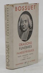 BOSSUET. Oraisons funèbres, panégyriques. Paris, NRF, Bibliothèque de la Pléiade ; in-12, reliure de l’éditeur ocre, jaquette papier. 10/20 € Petites déchirures à la jaquette