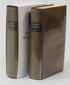CLAUDEL. Journal. I.– II. Paris, NRF, Bibliothèque de la Pléiade ; 2 vol. in-12, reliure de l’éditeur marron, rhodoïd. 20/30 € Étui cartonné illustré pour le premier volume