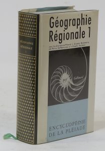 ENCYCLOPÉDIE. Géographie régionale. I. Paris, NRF, Bibliothèque de la Pléiade ; in-12, reliure de l’éditeur verte, jaquette papier, rhodoïd. 10/20 €