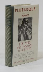 PLUTARQUE. Les Vies des hommes illustres. I. Paris, NRF, Bibliothèque de la Pléiade ; in-12, reliure de l’éditeur verte, jaquette papier et rhodoïd. 10/20 €