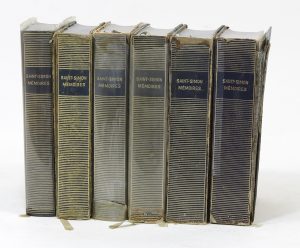 SAINT-SIMON. Mémoires. I.– VI. Paris, NRF, Bibliothèque de la Pléiade ; 6 vol. in-12, reliure de l’éditeur bleue. 40/50 € Les 3 premiers volumes portent l’ex-libris manuscrit de Marie Laurencin. Volumes usagés, forts accrocs