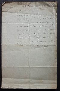 Cette petite missive, datée du 24 juin 1684, s’inscrit dans le contexte de la guerre dite « des Réunions », court conflit peu connu entre la France et l’Espagne (1683-1684). Elle nous plonge dans les arcanes de cette stratégie de cabinet élaborée par le roi et ses plus proches conseillers pour diriger les armées en campagne depuis Versailles. Louvois y évoque la satisfaction de Louis XIV suite au succès d’une course dirigée par le marquis de Saint-Silvestre (Louis du Faur de Satilien), laquelle course est certainement à relier avec le siège de Luxembourg qui a lieu au mois de juin 1684 et auquel participe justement le marquis de Saint-Silvestre