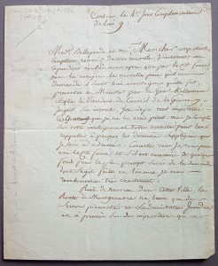 bien avantageux [que la nouvelle pièce qu’il envoie] fut présentée au Ministre par le Génl Kellermann et que le président du Conseil de la Guerre y joignit son intérêt. J’ai déjà tant importuné ces généraux que je ne lui écris point, mais je compte sur votre intelligence et votre activité pour leur rappeler à propos, les dernières suppliques que je leur ai adressées […]. »