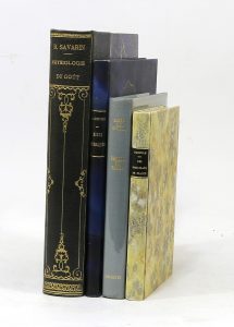 [GASTRONOMIE]. Ensemble de 4 ouvrages de gastronomie.  ; 4 vol.. 80/100 € • BRILLAT SAVARIN. Physiologie du goût, précédée d’une Notice par Alp. Karr. Dessins de Bertall. Paris, Furne et Cie, 1864. Demi-chagrin bleu, dos lisse orné de...