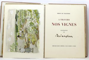 HÉRON de VILLEFOSSE (René). À Travers nos vignes. Paris, Bernard Klein, 1920 ; in-folio en ff., couverture illustrée, chemise demi-parchemin blanc et étui. 120/150 € Eau-forte originale en couverture et 9 hors-texte aquarellés au pochoirs...