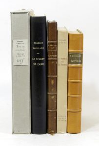 [ILLUSTRÉS]. Réunion de 5 ouvrages de littérature illustrés.  ; . 180/250 € • BAUDELAIRE (Charles). Le Spleen de Paris. Poèmes en Prose. Paris, Éditions de la Banderole, 1922 ; gr. in-8, demi-chagrin noir, dos lisse, [rel....