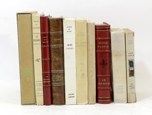 [ILLUSTRÉS]. Réunion de 10 ouvrages de littérature illustrés.  ; . 100/150 € • MUSSET (Alfred de). Mimi pinson. Paris, Gründ, 1941 ; gr. in-8, broché. Compositions de Dignimont reproduites et aquarellées au pochoir. • PONCHON...
