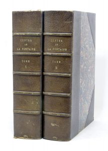Réimpression de l'édition de Didot de 1795, revue et augmentée d'une notice par Anatole de Montaiglon, avec les illustrations de Fragonard : portraits de La Fontaine et de Fragonard en frontispices, 2 titres gravés avec vignette, 92 figures hors texte, dont 58 gravées à l’eau-forte par A. P. Martial.