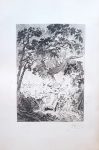 - des Figures des Contes de La Fontaine, destinées à compléter les figures de la Suite des cent estampes, publiées par Beillet en 1883 : 14 compositions gravées à l’eau-forte par A. P. Martial. Exemplaire non justifié sur papier du Japon (la justification indique que les différents états sont tirés sur papier de Hollande van Gelder).