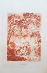 - la Suite d’estampes d’après Lancret, Pater, Eisen, Boucher, etc., publiée chez Lemonnyer en 1885 et tirée sur papier du Japon : 44 figures gravées au burin, avant la lettre et 6 figures gravées au burin, tirées en rouge, avec la lettre. (Le titre te la table annoncent 38 figures hors texte et deux vignettes.)