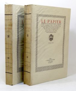 LE CLERT (Louis). Le Papier. Recherches et notes pour servir à l'histoire du papier, principalement à Troyes et aux environs depuis le quatorzième siècle. Préface par Henri Stein. Paris, à l’enseigne du Pégase, 1926 ; 2 forts vol. in-folio,...