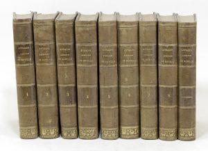 Les première et septième livraisons sont de la troisième édition. Légères piqûres. Cinq planches atteintes au pli par le ciseau du relieur