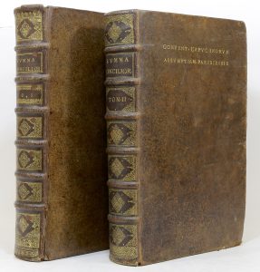 MERLIN (Jacques). Summa conciliorum omnium. Paris, Frédéric Léonard, Gilles Alliot, 1672 ; 2 vol. in-folio (39 x 24,5 cm), veau marron granité, super ex-libris sur le second plat supérieur, dos à nerfs à motifs dorés, [rel. de l'époque],...