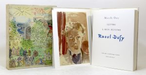 OURY (Marcelle). Lettre à mon peintre. Raoul Dufy. Paris, Librairie Académique Perrin, Imprimerie Nationale, 1965 ; in-4 en ff. (30,5 x 24,2 cm), sous double emboîtage d'édition illustré d'une composition de Dufy, couverture rempliée imprimée...