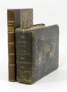 • [CAPELLE (Pierre Adolphe). La Clé du Caveau à l'usage de tous les Chansonniers français, des Amateurs, Auteurs, Acteurs du Vaudeville et de tous les Amis de la Chanson. Paris, chez l'auteur, vers 1810] ; in-8 oblong, demi-maroquin à long grain vert bronze, dos long orné de motifs dorés, non rogné, [rel. de l'époque], un peu frottée, coins usagés.