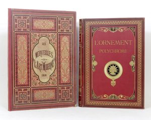 RACINET (A.). L'Ornement polychrome. Cent planches en couleurs, or et argent […]. Recueil historique et pratique. Paris, Firmin-Didot frères, fils et Cie, [vers 1870] ; in-folio, demi-chagrin rouge, plats de percaline rouge ornés de plaques...