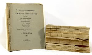 ROSEROT (Alphonse). Dictionnaire historique de la Champagne méridionale (Aube) des origines à 1790. Langres, Angers, Imprimerie champenoise, Éditions de l'Ouest, 1942-1948 ; 25 fascicules pet. in-4, en ff., sous chemises. 100/150 € Édition...