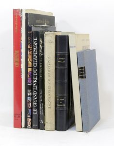 [VINS.– CHAMPAGNE]. Ensemble de 10 ouvrages sur les vins de Champagne.  ; 10 vol. in-8 à in-4. 80/100 € • GANDON, MAUROIS. Champagne. Neuchatel, à la Baconnière, 1958. • ROBERT, HUYGHENS, DANRIGAL. Les Routes du Champagne. Paris,...