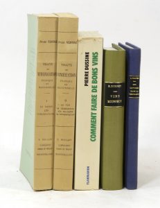 [VINS.– VINIFICATION]. Ensemble de 4 ouvrages sur la vinification.  ; 5 vol.. 80/100 € • VENTRE (Jules). Traité de vinification pratique et rationnelle. Montpellier, R. Poulain, 1946. 2 volumes, dos passés. • DUSSINE (Pierre). Comment...