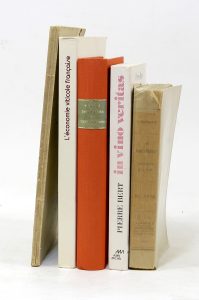 [VINS]. Ensemble de 5 ouvrages sur le vin.  ; 5 vol.. 60/80 € • BARTOLI, BOULET, LACOMBE, etc. L’Économie viticole française. Paris, Institut national de la Recherche agronomique, 1987. • MARTIN (Germain). Essai sur la vente des vins...