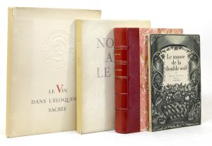 • KRAU (Abbé). Le Vin dans l'éloquence sacrée, quatre sermons de l'Abbé Krau […] prononcés à l'occasion de La Fête de Saint Vincent, patron des vignerons. Suivis d'une Allocution faite en la cour d'honneur de l'Hôtel-Dieu de Beaune […]. Commentés par Georges Rozet. Nuits-Saint-Georges, La Compagnie des chevaliers du tastevin, 1955