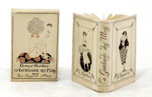 Charmant almanach [BARBIER (George)].– BOYLESVE (René). La Guirlande des mois. Cinquième année. 1921. Paris, Meynial, 1921 ; in-12, cartonnage de l’éditeur satin crème orné d’un décor en noir et or, tranches dorées, chemise et étui...