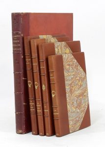 Les 4 derniers ouvrages portent les initiales J. B. dorées en pied des dos